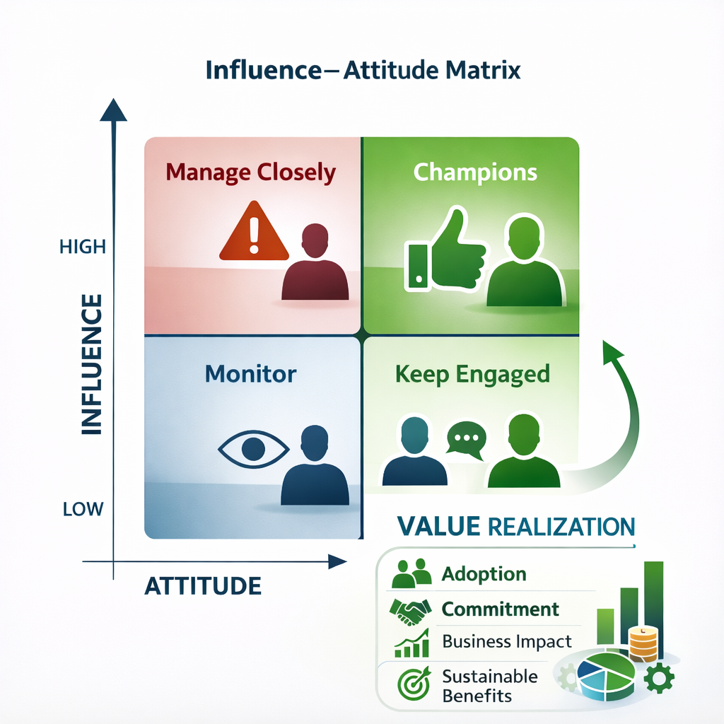 Most organizations can produce a stakeholder list within a few hours. A workshop is scheduled, participants brainstorm names, and the output is a long inventory […]