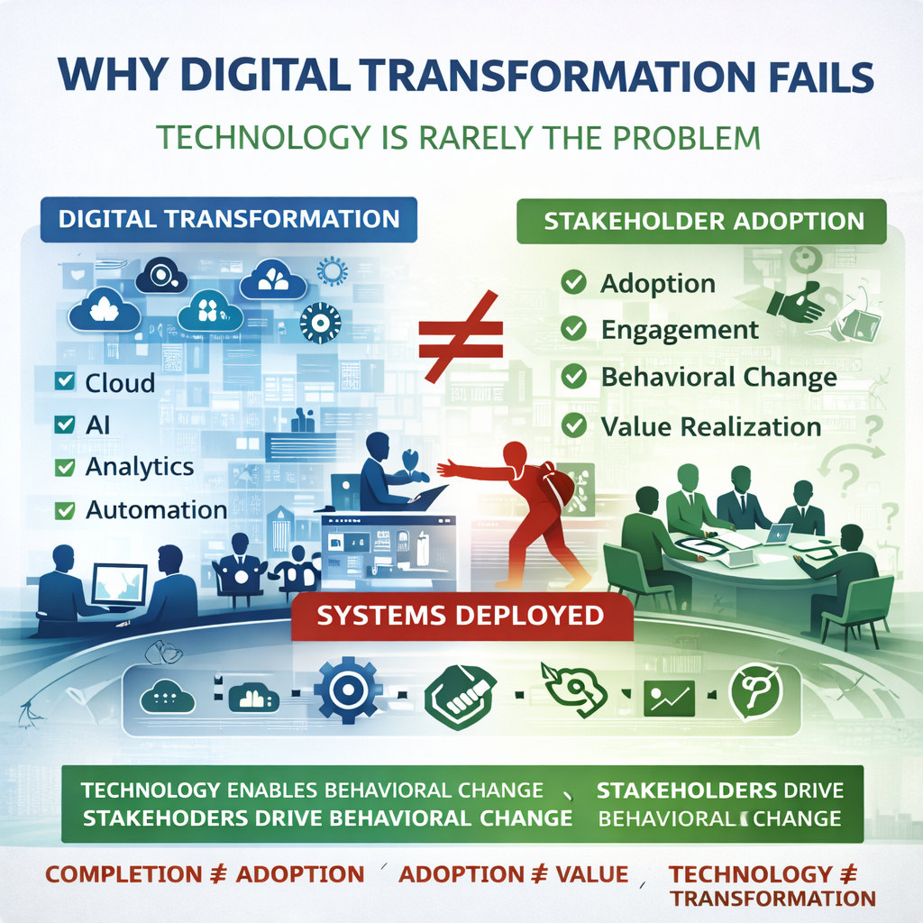 Organizations frequently analyze why transformations fail. They attribute failure to inadequate technology, insufficient funding, poor planning, or weak execution. While these factors matter, they rarely […]