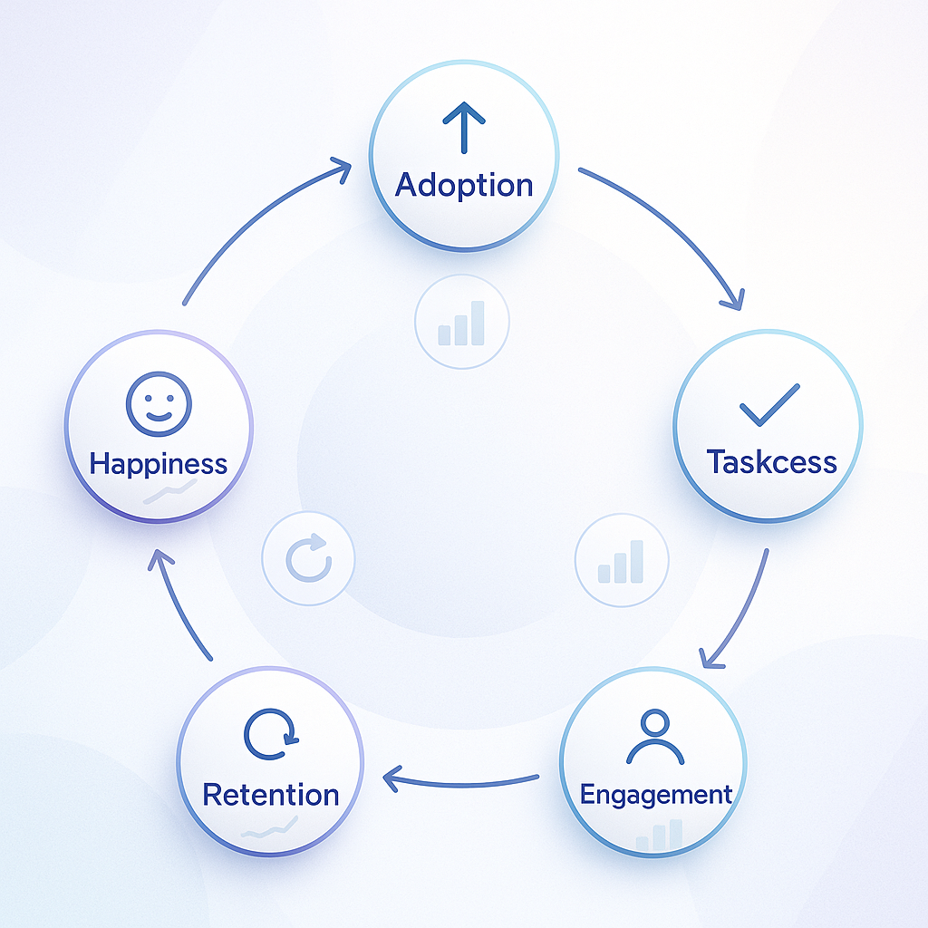 Instead of beginning with business outcomes, HEART starts with how users feel and behave within the product.
