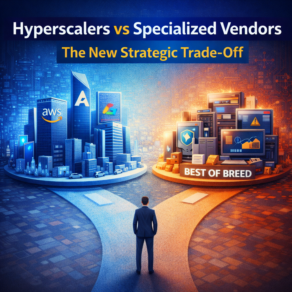 Hyperscalers vs specialized vendors has become one of the most important strategic decisions in enterprise technology architecture. For decades, enterprise technology procurement followed a relatively straightforward principle: organizations selected the best product available in each category. Security, databases, analytics, networking, and monitoring were purchased independently, often from specialized vendors that focused deeply on a single domain. This model became widely known as the best-of-breed strategy, and it dominated enterprise technology architectures for more than twenty years.